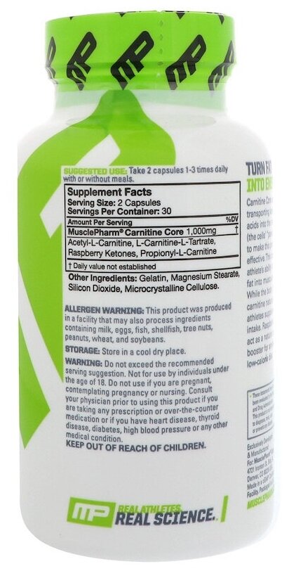 Type: L-carnitine, formulation: capsules/tablets, dietary features: no aspartame, no lactose, no maltodextrin, no sucralose, for whom: for women, for men