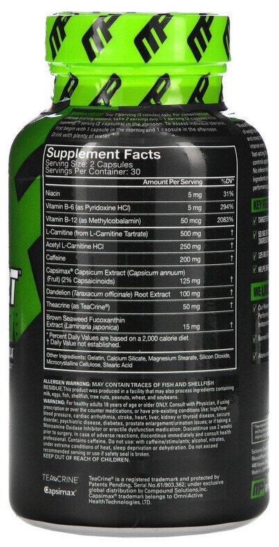 Additional Information: Contains anhydrous caffeine; composition: caffeine anhydryl, green coffee bean extract, carrier: E460, L-carnitine-L-tartrate, L-theanine, cocoa bean extract, anti-caking agents: E551, E470, black pepper extract, kale pepper powder