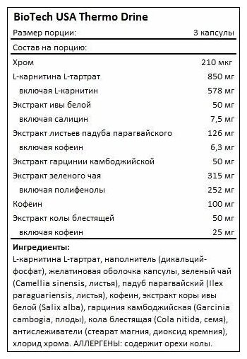 Contains anhydrous caffeine; composition: caffeine anhydryl, green coffee bean extract, carrier: E460, L-carnitine-L-tartrate, L-theanine, cocoa bean extract, anti-caking agents: E551, E470, black pepper extract, kale pepper powder