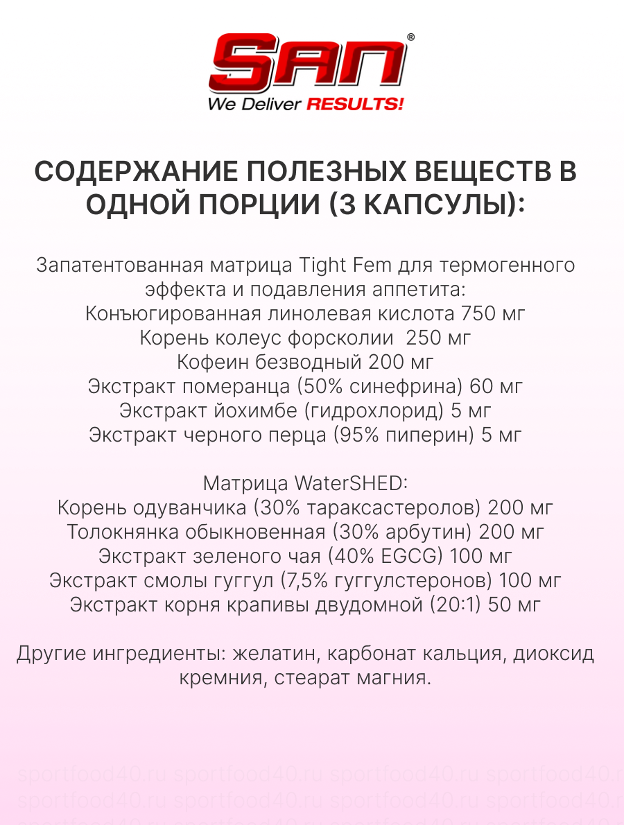 Type: thermogenic, dosage form: capsules/tablets, dietary features: no aspartame, no maltodextrin, no sucralose, for whom: for women