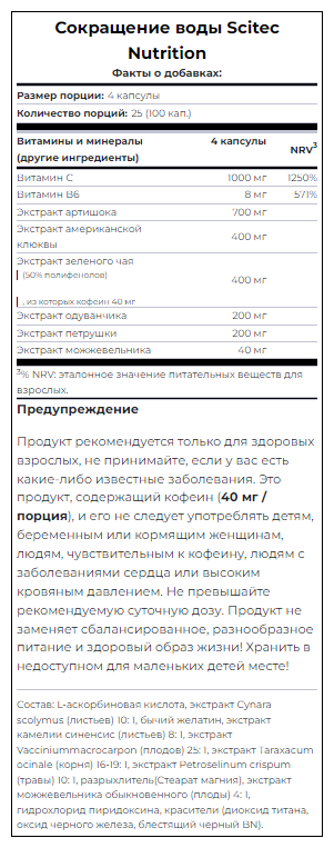 Type: diuretic, dosage form: capsules/tablets, dietary features: aspartame-free, lactose-free, maltodextrin-free, sucralose-free, for whom: for women, for men