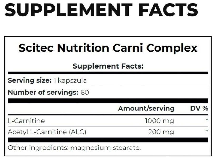 Type: L-carnitine, formulation: capsules/tablets, dietary features: no aspartame, no lactose, no maltodextrin, no sucralose, for whom: for women, for men