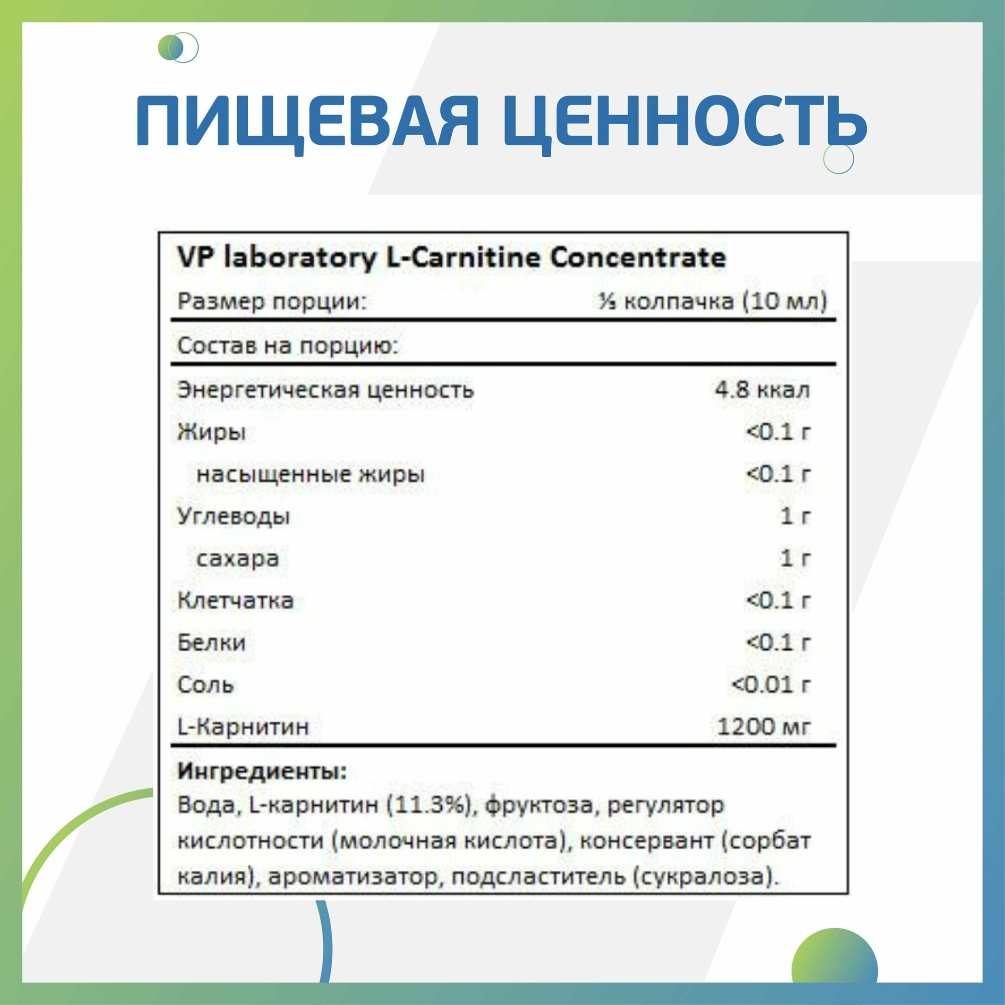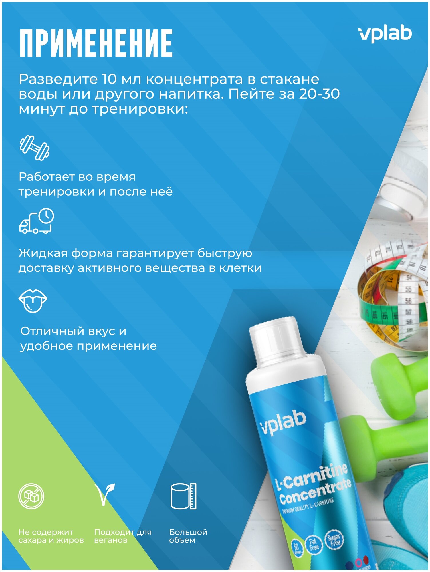Description: Type: L-carnitine, release form: solution, for whom: for women, for men