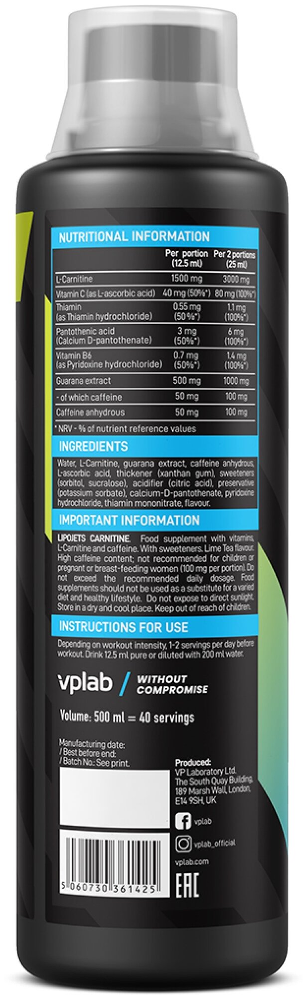 Vplab thermogenic LipoJets Carnitine New Sugar Free 500 ml
