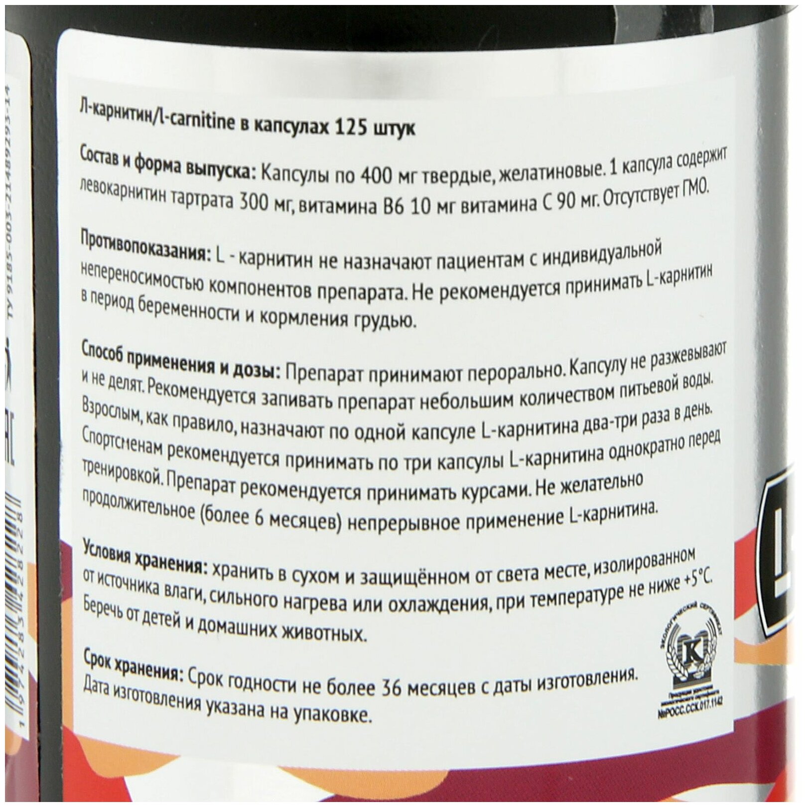 Recommendations for use: the capsule is not chewed or divided; it is recommended to drink the drug with a small amount of drinking water; adults are prescribed one capsule of L-carnitine two to three times a day; reko athletes