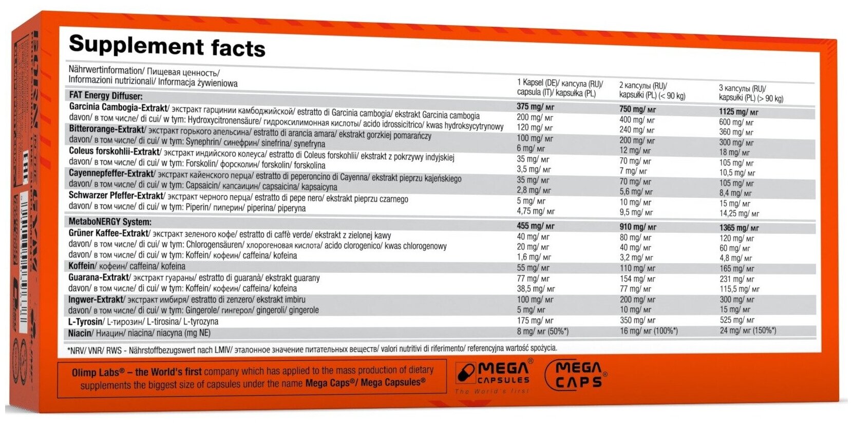 Additional Information: Contains anhydrous caffeine; composition: caffeine anhydryl, green coffee bean extract, carrier: E460, L-carnitine-L-tartrate, L-theanine, cocoa bean extract, anti-caking agents: E551, E470, black pepper extract, kale pepper powder