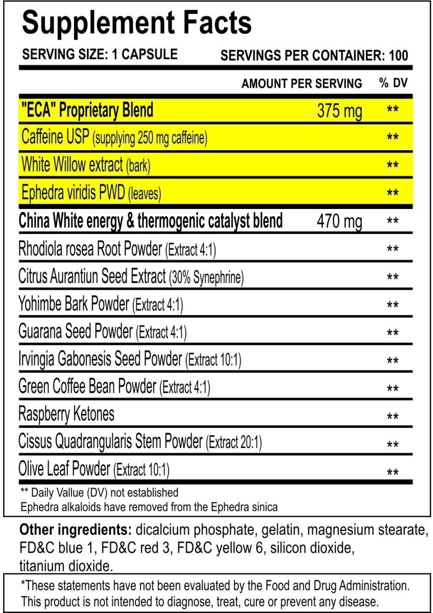 Contains anhydrous caffeine; composition: caffeine anhydryl, green coffee bean extract, carrier: E460, L-carnitine-L-tartrate, L-theanine, cocoa bean extract, anti-caking agents: E551, E470, black pepper extract, kale pepper powder