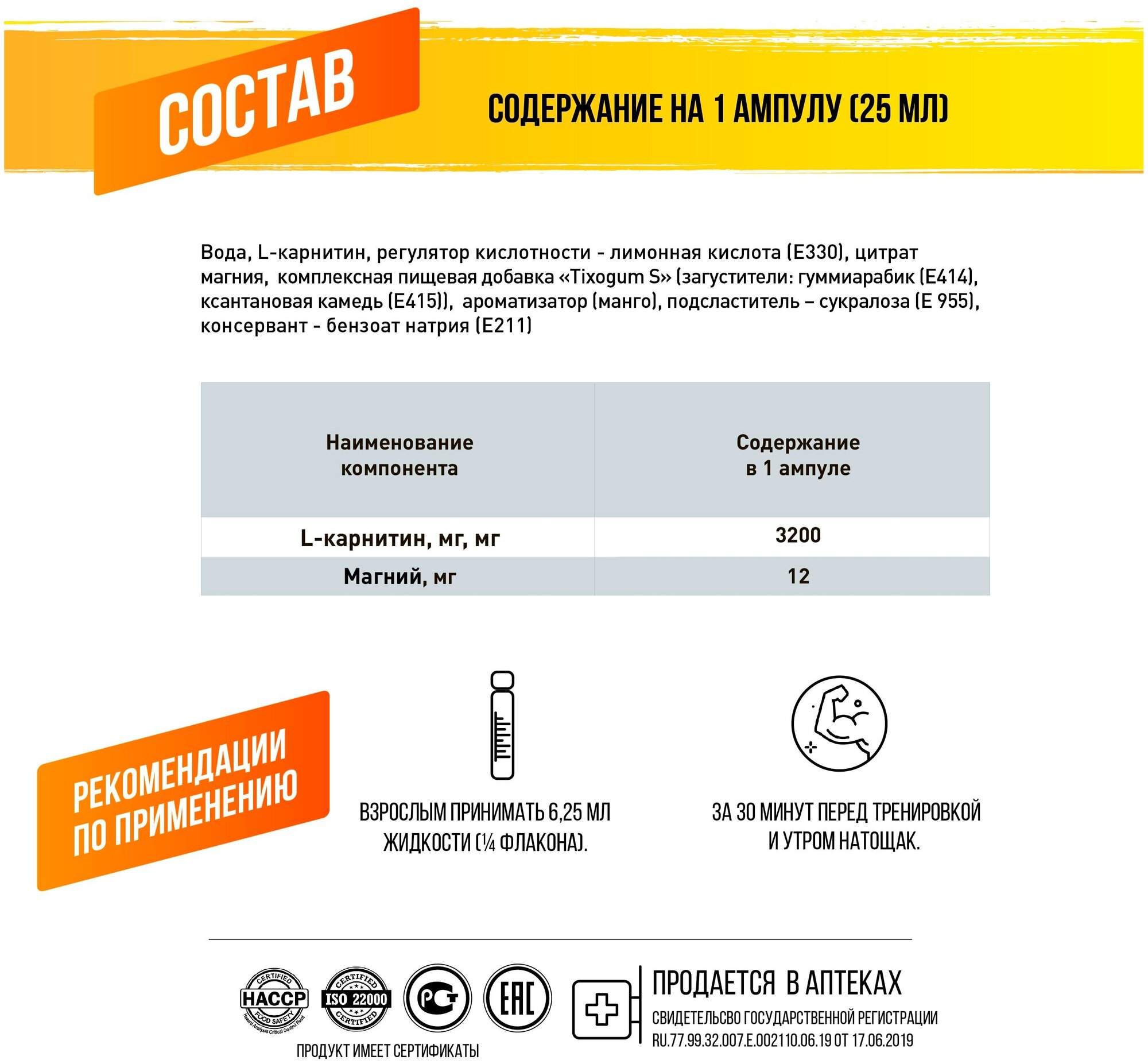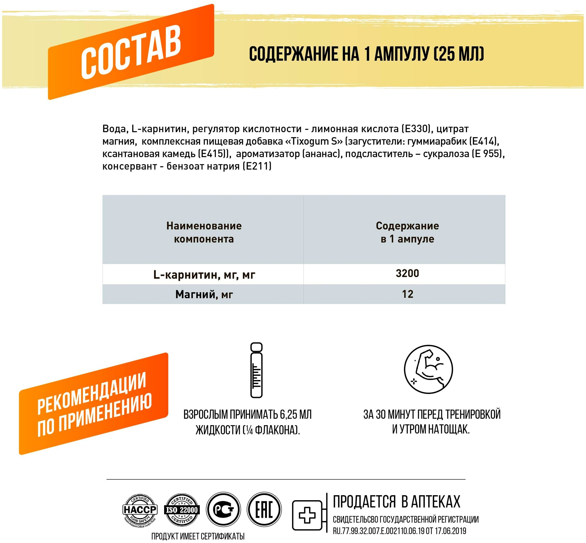 Suggested Use: Take L-carnitine 30 minutes before training and in the morning on an empty stomach