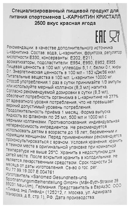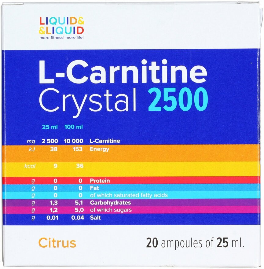Type: L-carnitine, dosage form: solution, dietary features: aspartame-free, gluten-free, lactose-free, maltodextrin-free, sucralose-free, for whom: for children, for women, for men