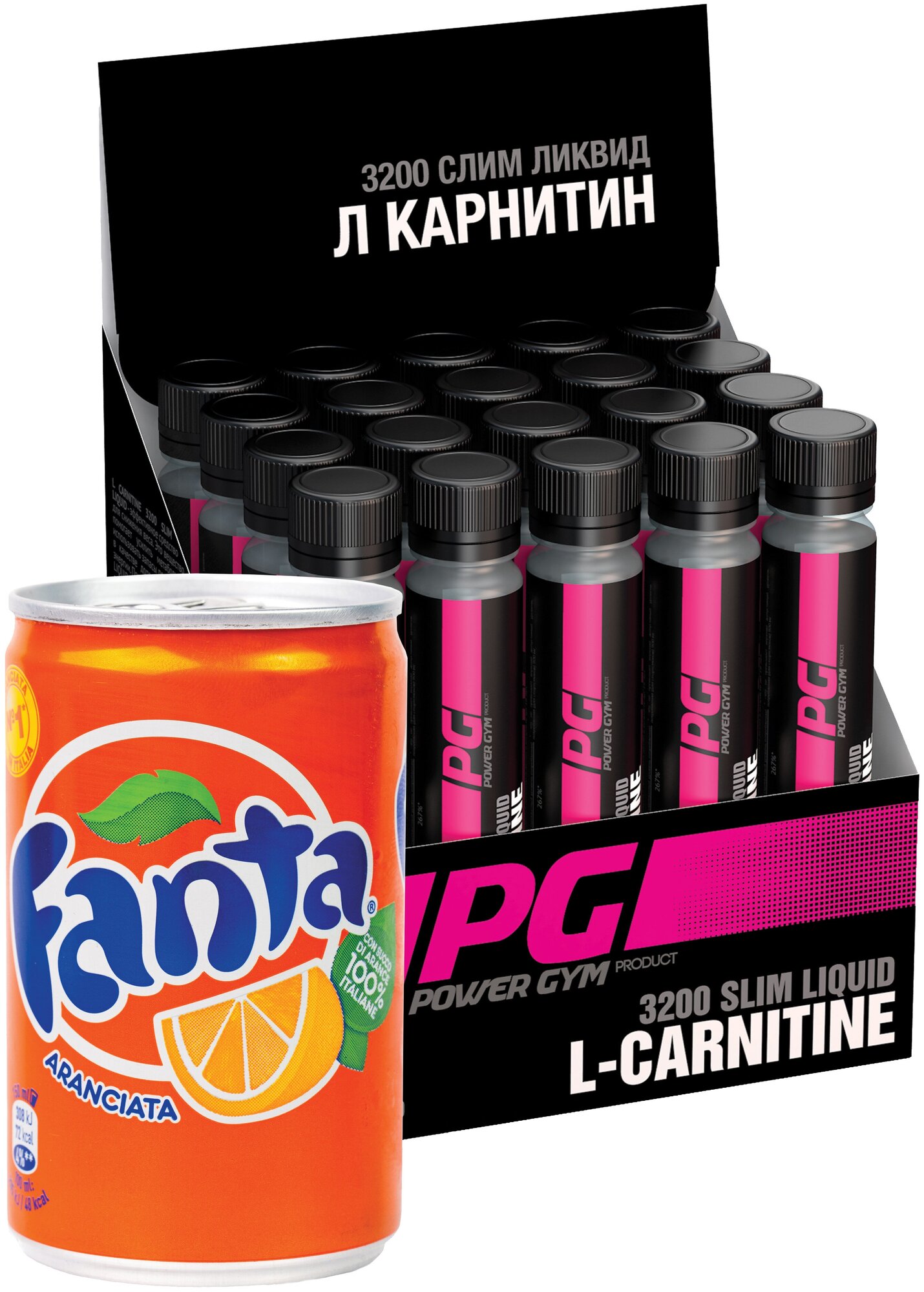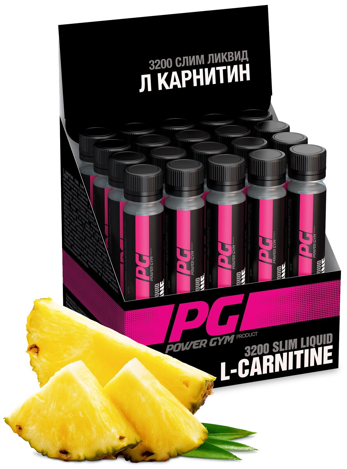 Composition: purified water, l-carnitine, citric acid, food flavoring, potassium sorbate, sucralose; recommendations for use: 1/4 bottle of 25 ml 6.25 ml drink 30 minutes before training 1 time per day