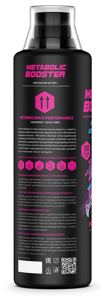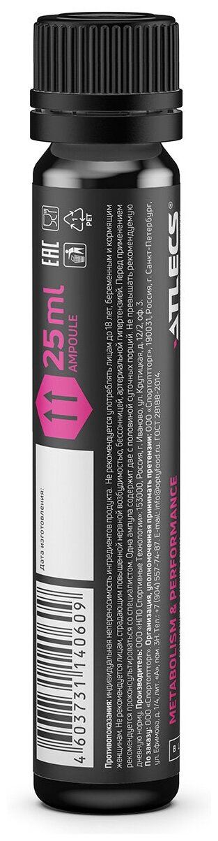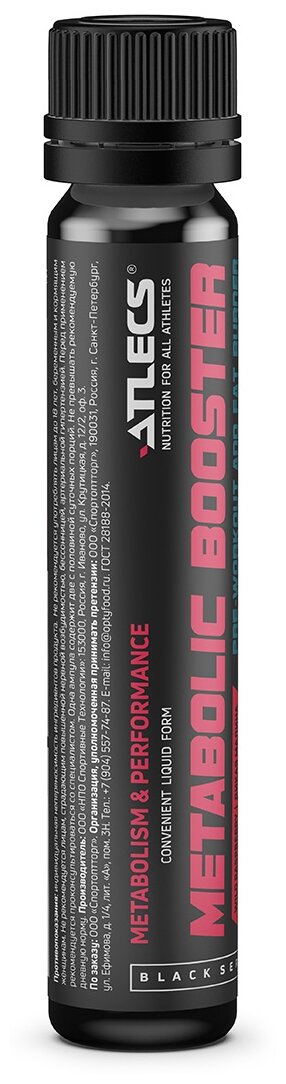 Fat burner for athletes Metabolic Booster Atlecs black series 20 ml 20 pieces