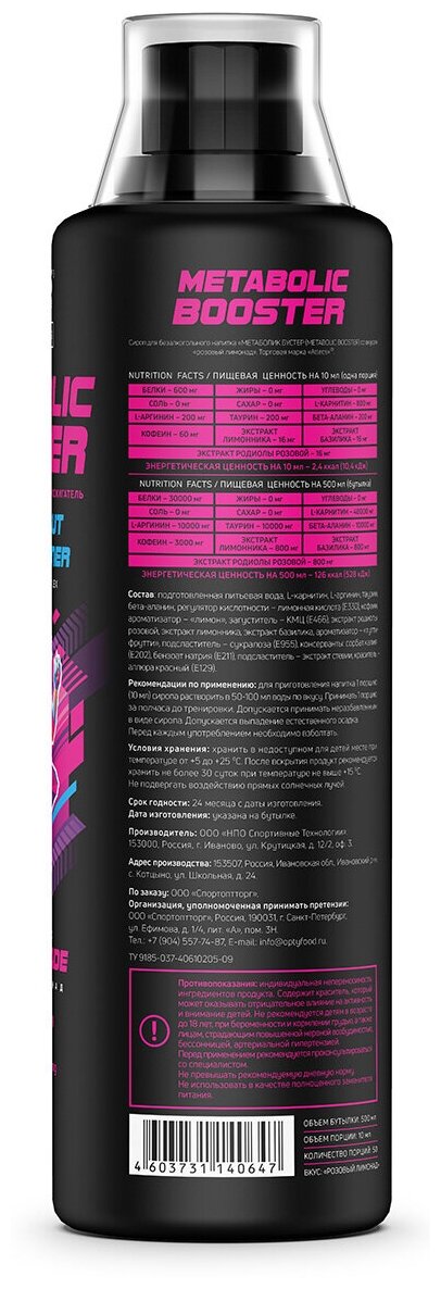Directions for use: Take 1 serving of 10 ml half an hour before training; shake before use