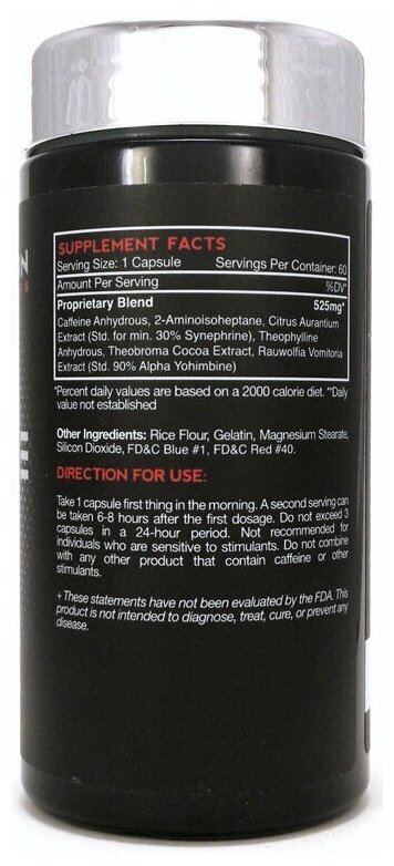 Type: thermogenic, formulation: capsules/tablets, dietary features: aspartame free, gluten free, lactose free, maltodextrin free, sucralose free, vegan, vegetarian