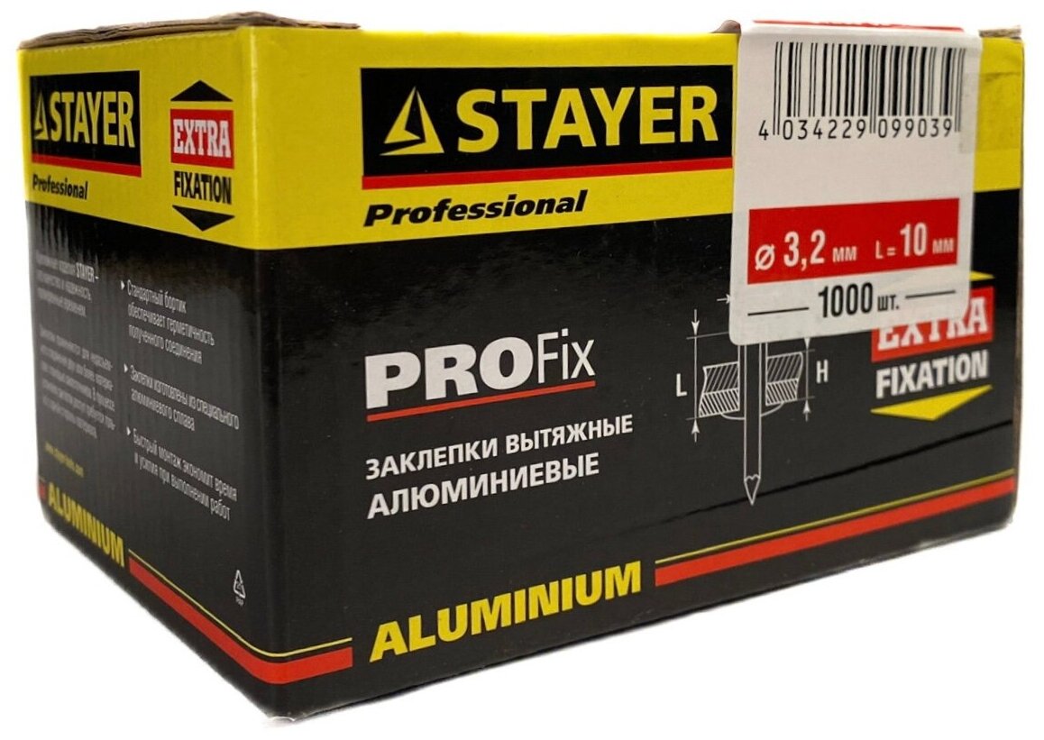 Aluminum rivets Pro-FIX, 3.2 x 10 mm, 1000 pcs, STAYER Professional