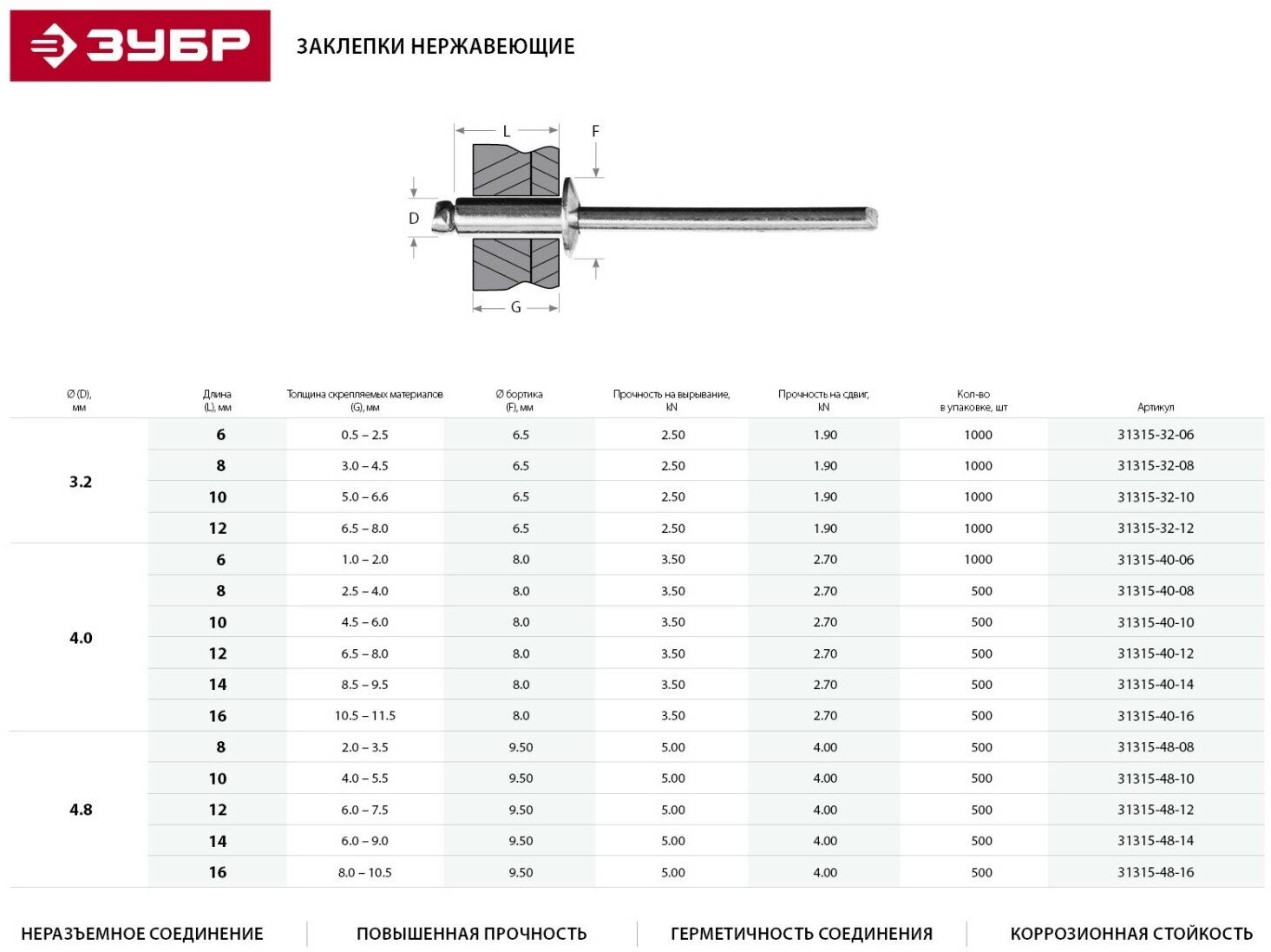 Blind rivet ZUBR 31315-40-12 4.0 x 12
