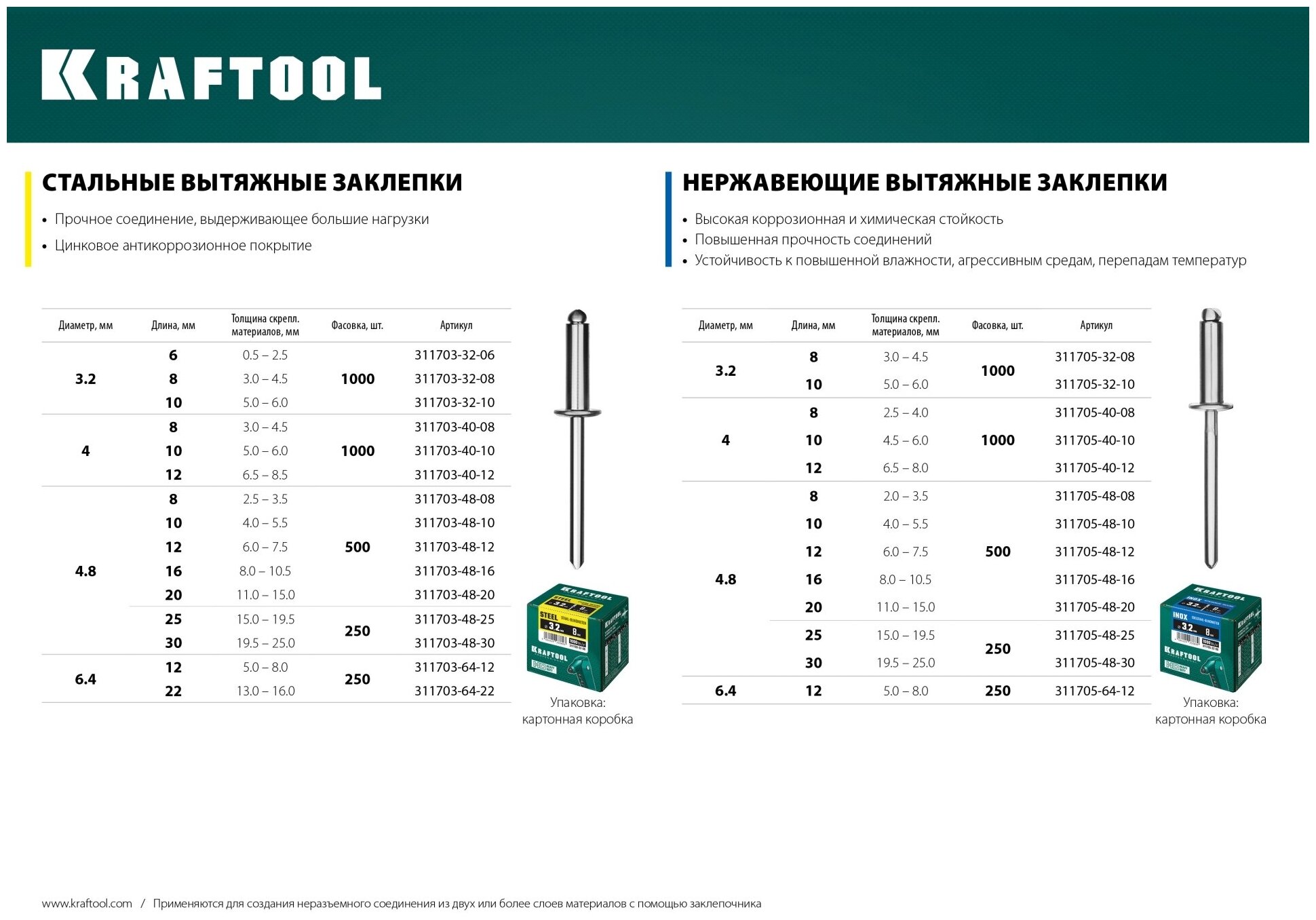 Blind rivet Kraftool Steel 311703-48-10 4.8 mm x 10 mm
