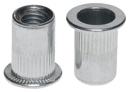 Head type: cylindrical, flange size: reduced, body shape: knurled, material: steel