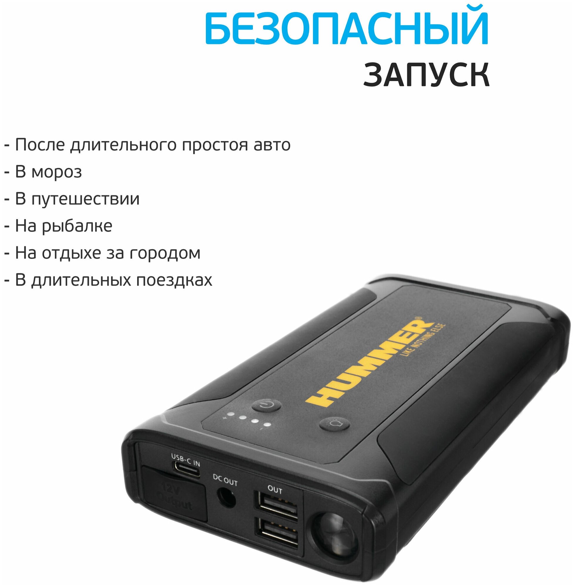 Type: starting device, battery voltage: 12 V, built-in battery, Built-in battery capacity, mAh: 8000, functions: built-in flashlight, Powerbank mobile device charging, maximum starting current: 1500 A, indication: LED