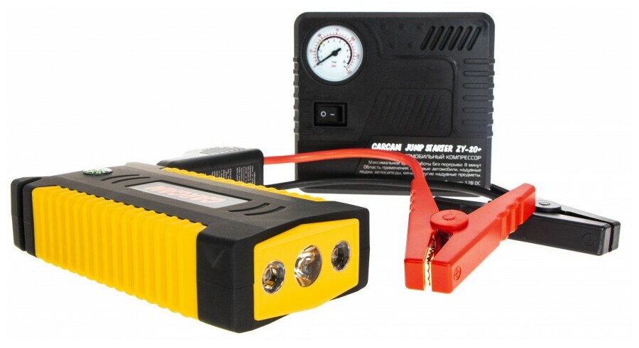 Included: starter charger, device connection cable, mains power adapter, terminals, user manual, carrying case, cigarette lighter power adapter; built-in hammer, safe l