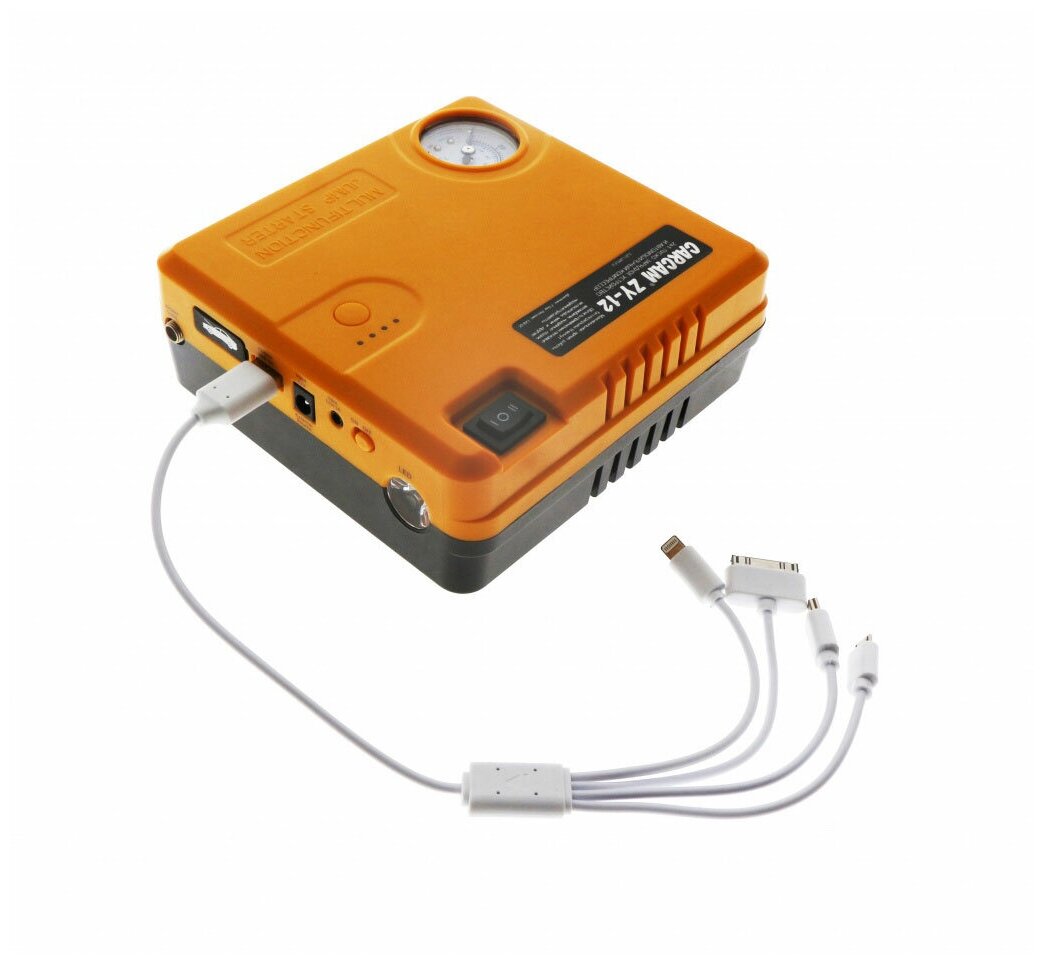 Battery voltage: 12 V, built-in battery, Built-in battery capacity, mAh: 16800, functions: built-in compressor, built-in flashlight, Powerbank mobile device charging, maximum starting current: 600 A
