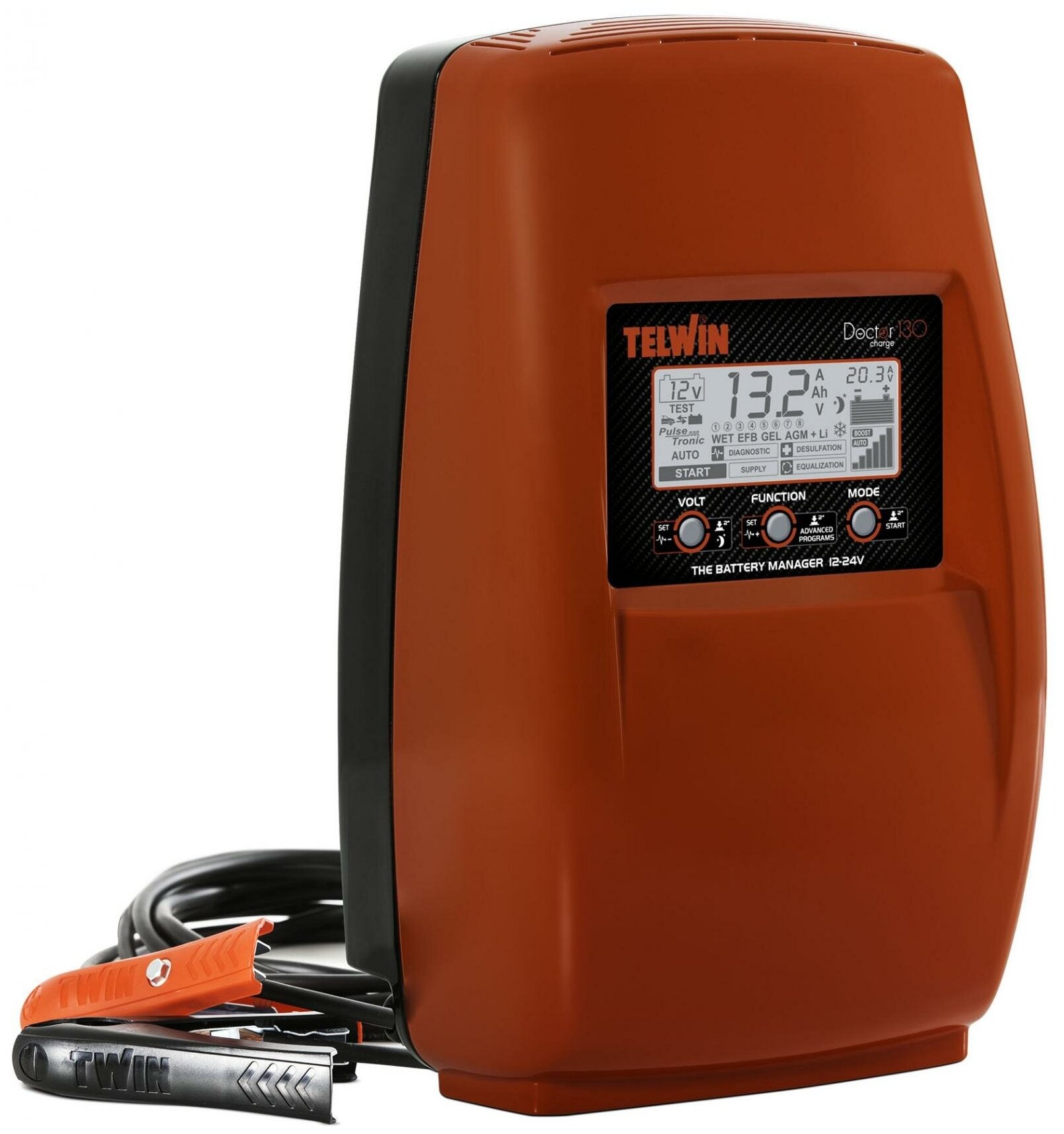 Type: jump starter, battery voltage: 12/24 V, automatic charging, functions: suitable for AGM/GEL batteries, maximum starting current: 180 A, maximum battery capacity: 1200 Ah