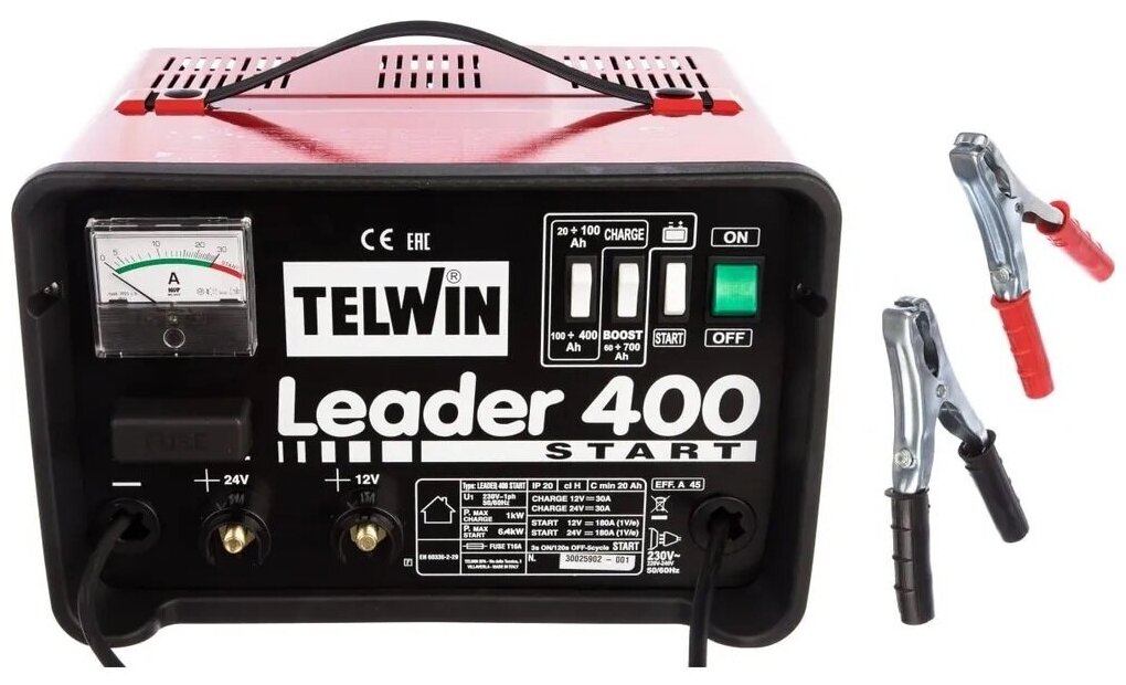 Type: start-charger, battery voltage: 12/24 V, functions: built-in ammeter, pre-start charging, maximum starting current: 300 A, Maximum battery capacity: 700 Ah, charge current control: Manual