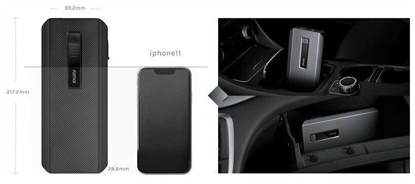 Type: starting device, battery voltage: 12 V, built-in battery, Built-in battery capacity, mAh: 18000, functions: built-in flashlight, Powerbank mobile device charging, mobile device charging, maximum starting current