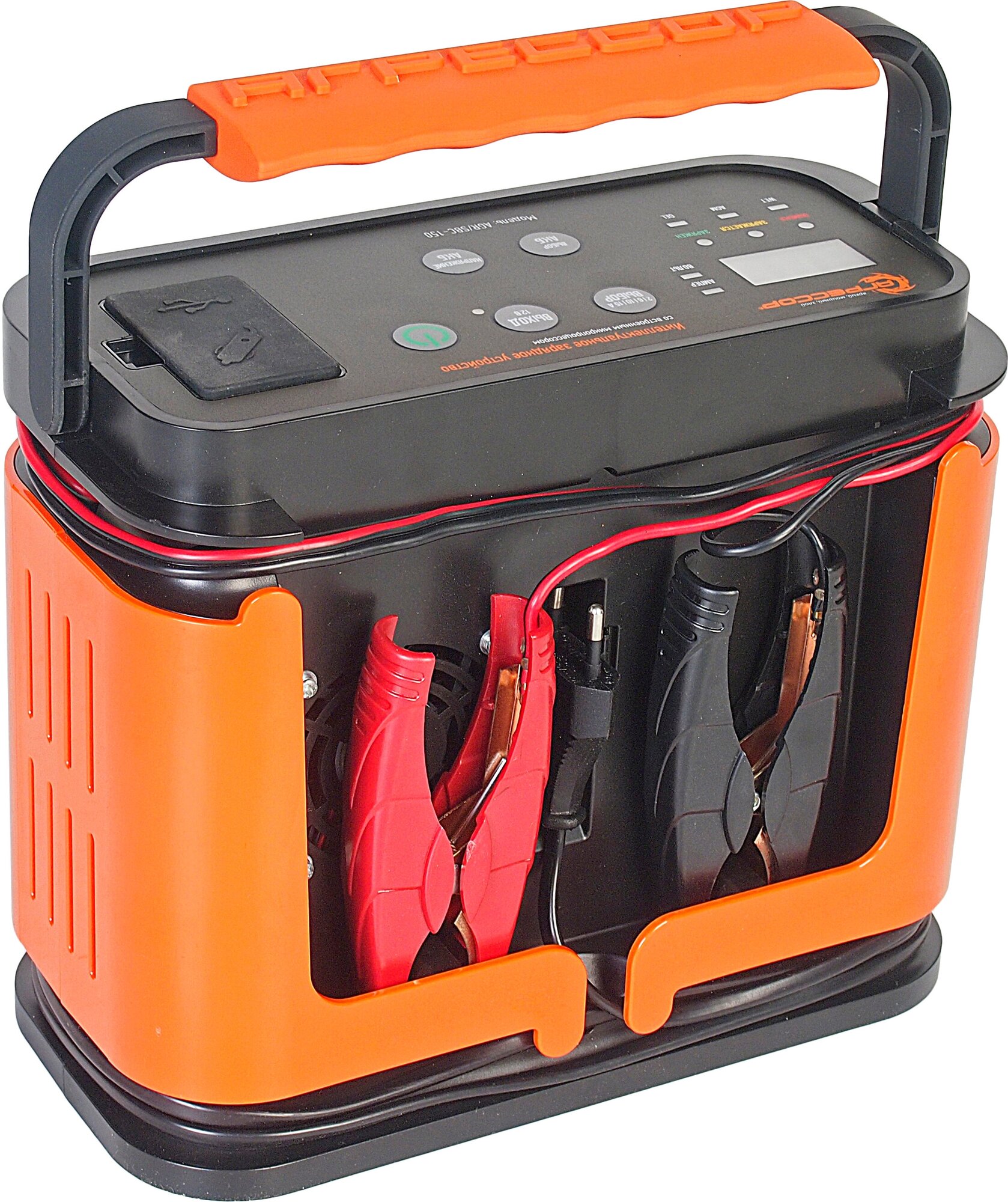 Type: jump start charger, battery voltage: 12 V, automatic charging, functions: charging of Powerbank mobile devices, suitable for AGM/GEL batteries, maximum starting current: 50 A, Maximum battery capacity: 120 Ah
