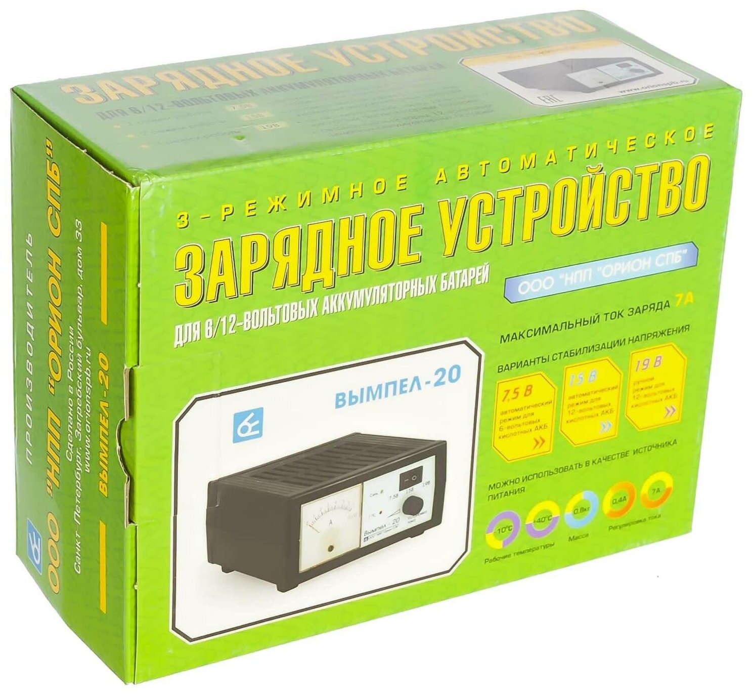 Type: start-charger, battery voltage: 6/12 V, automatic charging, functions: built-in ammeter, Maximum battery capacity: 85 Ah, indication: analog, charge current control: manual