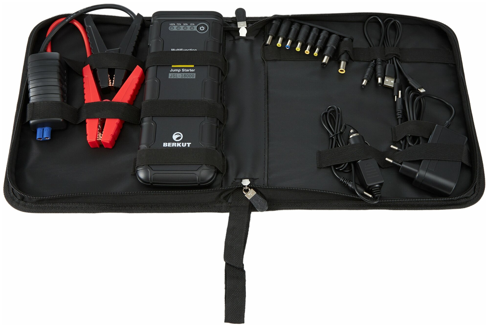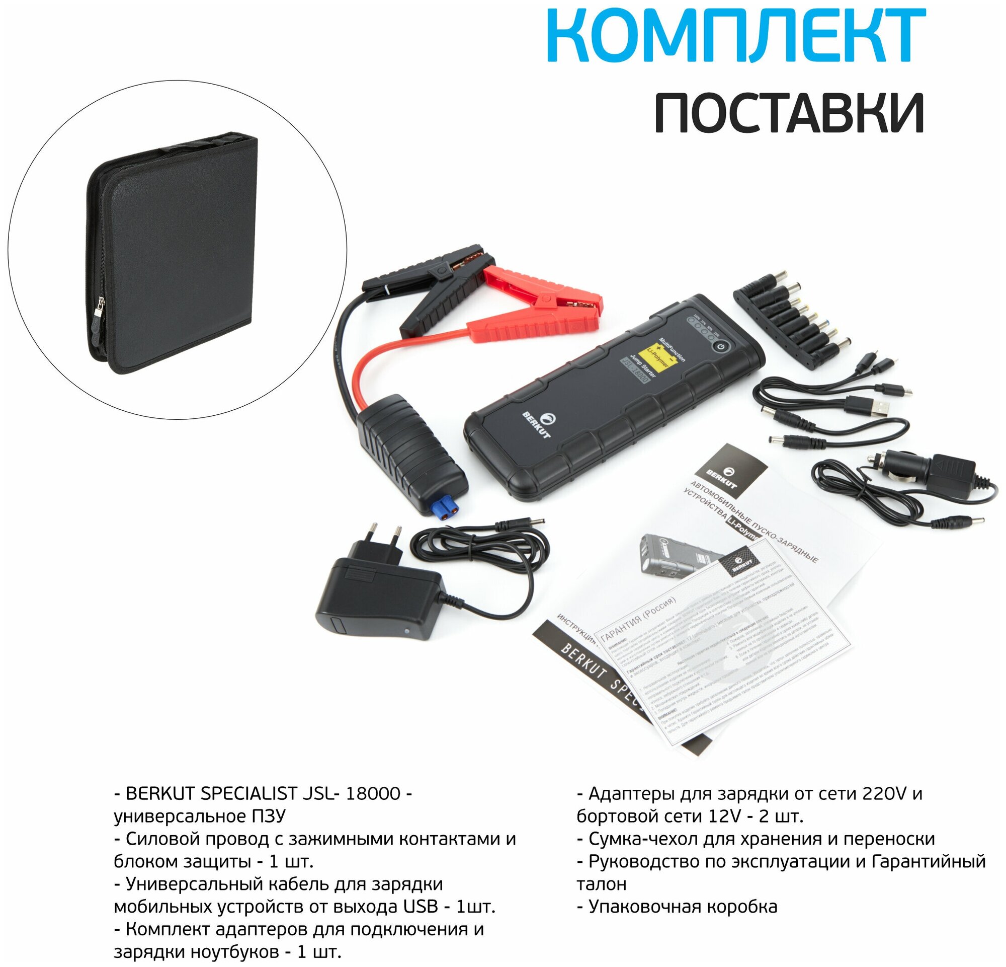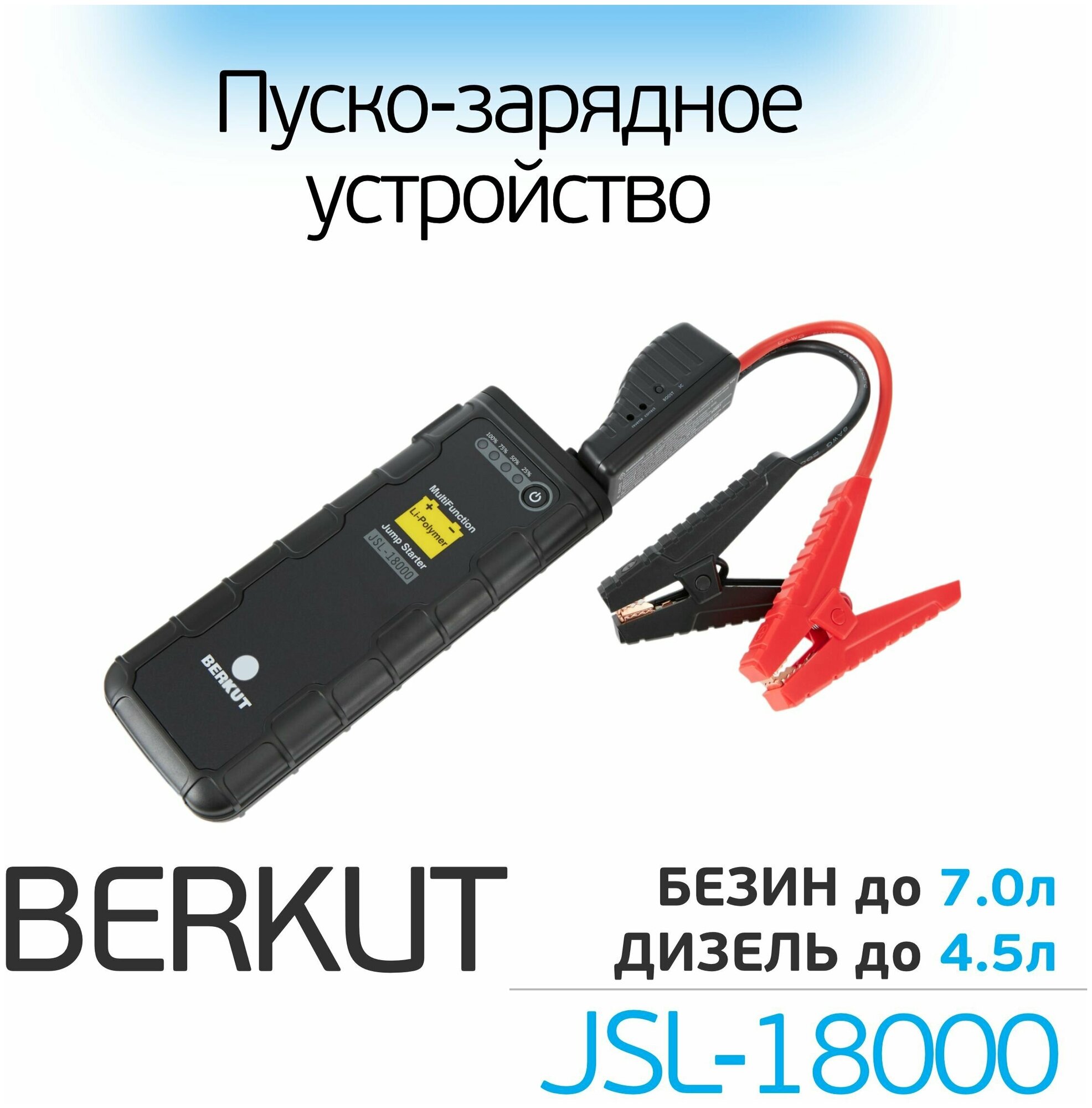 Type: start-charger, battery voltage: 12 V, built-in battery, Built-in battery capacity, mAh: 18000, functions: fast charging QC 3.0, built-in flashlight, charging Powerbank mobile devices, maximum starting current: 6