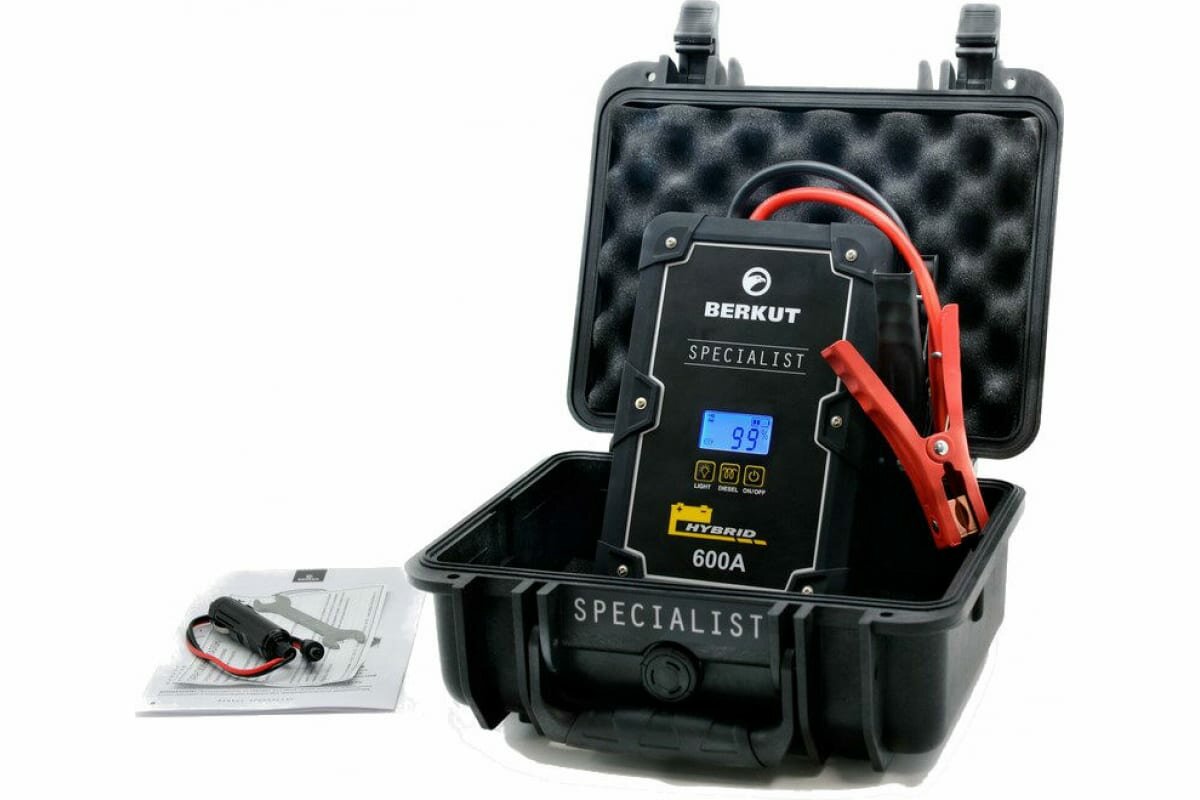 The ability to charge the starting device from the built-in battery 5-10 minutes, from the battery terminals up to 2 minutes, cigarette lighter 12V 3-5 minutes; case included