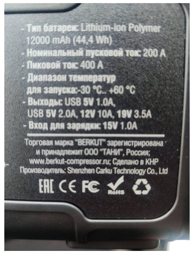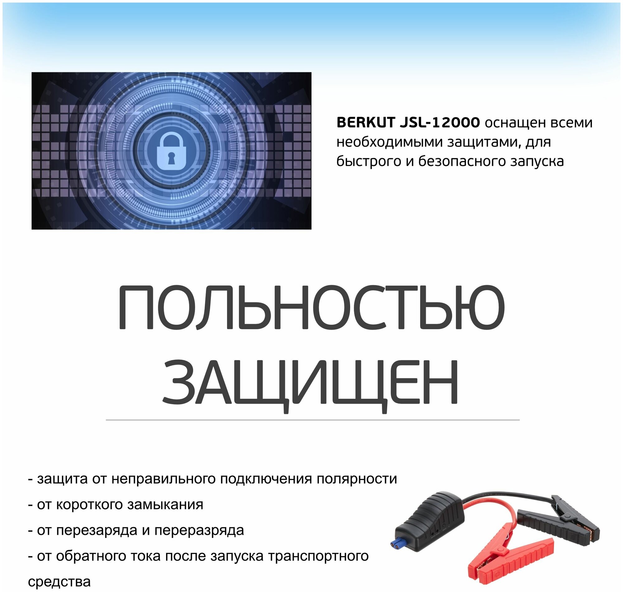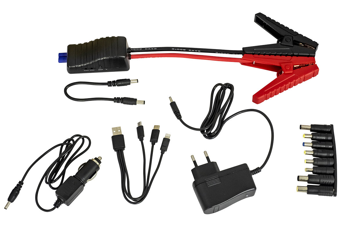Type: starting device, battery voltage: 12 V, built-in battery, Built-in battery capacity, mAh: 12000, functions: built-in flashlight, Powerbank mobile device charging, mobile device charging, maximum starting current
