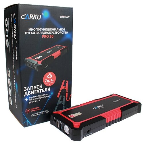 Type: starting device, battery voltage: 12 V, built-in battery, Built-in battery capacity, mAh: 17000, functions: built-in flashlight, Powerbank mobile device charging, pre-start charging, maximum starting current: 1200 A,