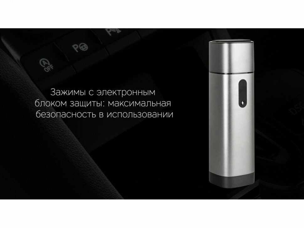 Type: starting device, battery voltage: 12 V, built-in battery, Built-in battery capacity, mAh: 10400, maximum starting current: 600 A, additional connectors: 2xUSB, micro-USB