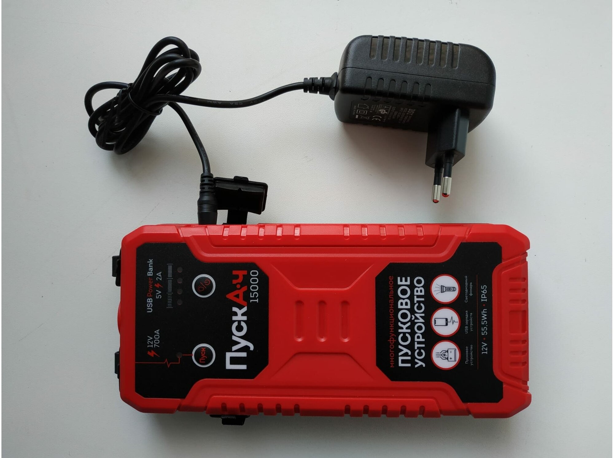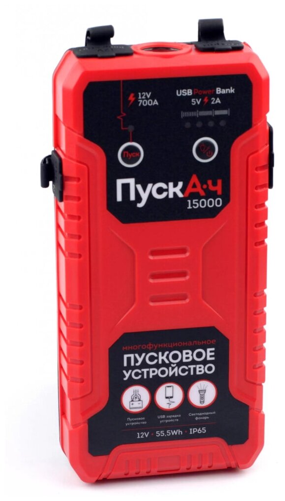 Type: start-charger, battery voltage: 12 V, built-in battery, Built-in battery capacity, mAh: 15000, functions: automatic charging shutdown, built-in flashlight, charging Powerbank mobile devices, charging about