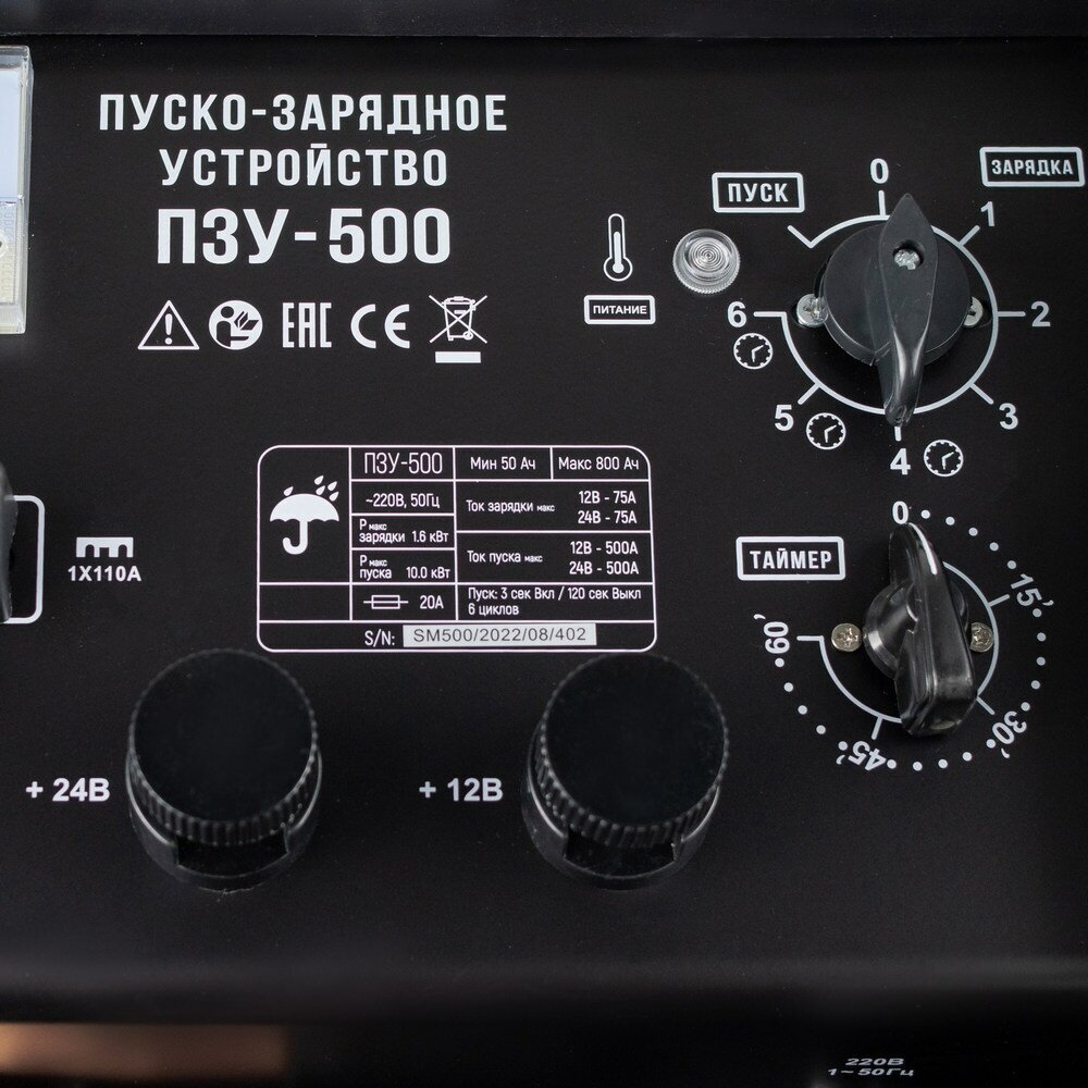 Type: start-charger, battery voltage: 12/24 V, functions: pre-charge, maximum starting current: 500 A, Maximum battery capacity: 800 Ah