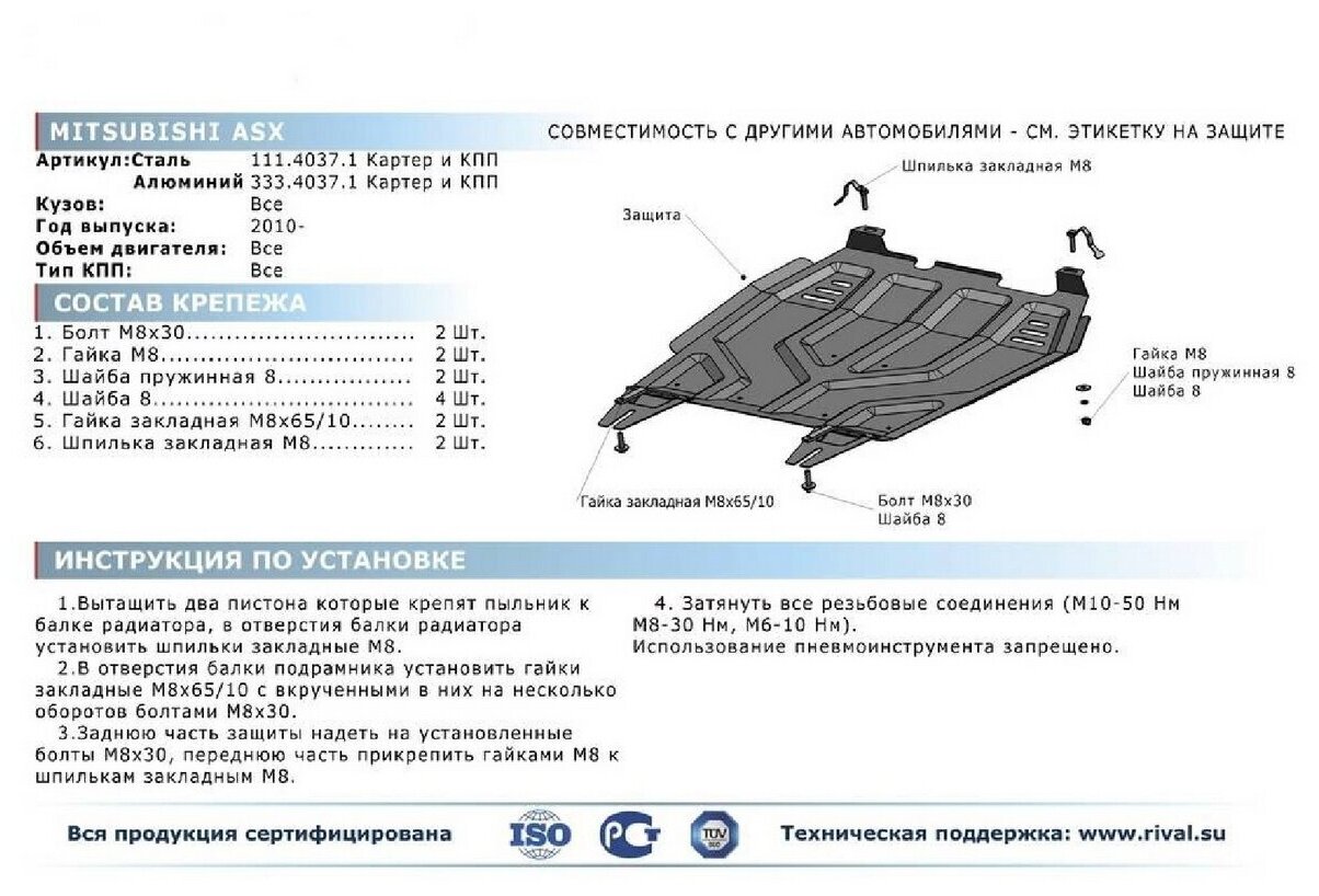 Citroen C4 Aircross 2012-2016 V - 1.6; 2.0;<br/> Citroen C-Crosser 2007-2013 V - 2.2;<br/> Mitsubishi ASX 2019-present V - 1.6;<br/> Mitsubishi ASX 2017-2019;<br/> Mitsubishi ASX 2010-2015;<br/> Mitsubishi Lancer X 2007-2018 V - 1.5; 1.8;<br/> Mitsubishi
