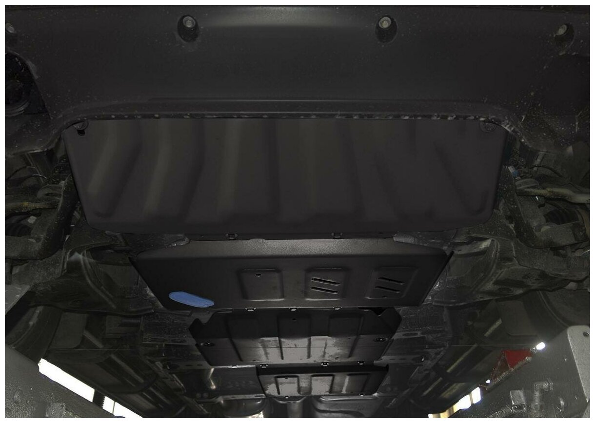 Protection kit, type of protection: engine crankcase, gearbox, radiator, transfer case, material: steel, stiffeners, oil drain hole, powder enamel coating, thickness: 3 mm, length: 850 mm, width: 7