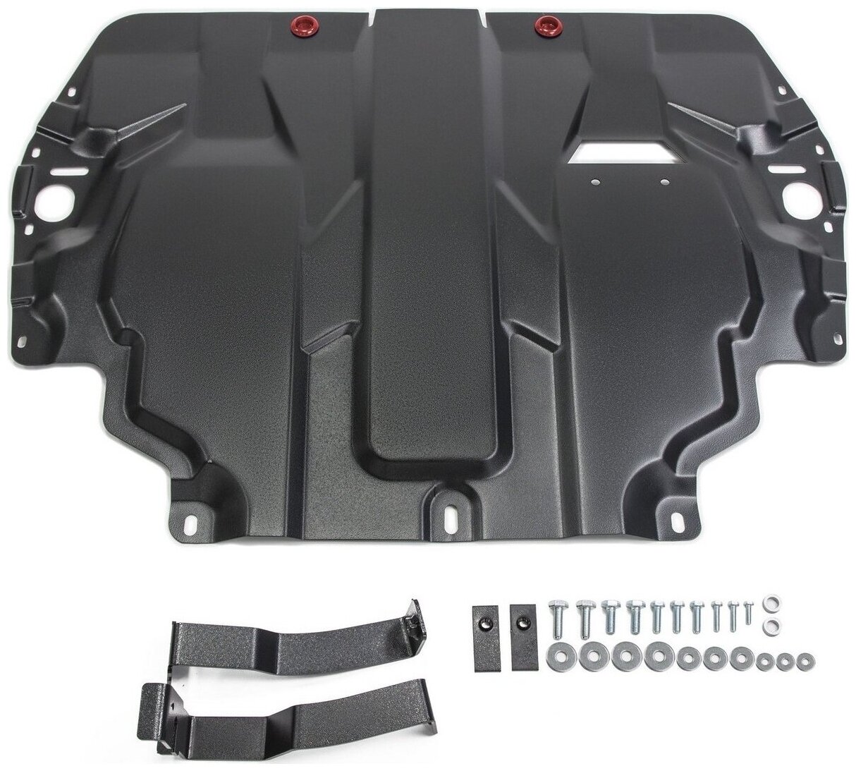 Type of protection: engine crankcase, gearbox, Carter, Gearbox, material: steel, stiffeners, oil drain hole, oil filter replacement hole, powder enamel coating, thickness: 1.80 mm, length