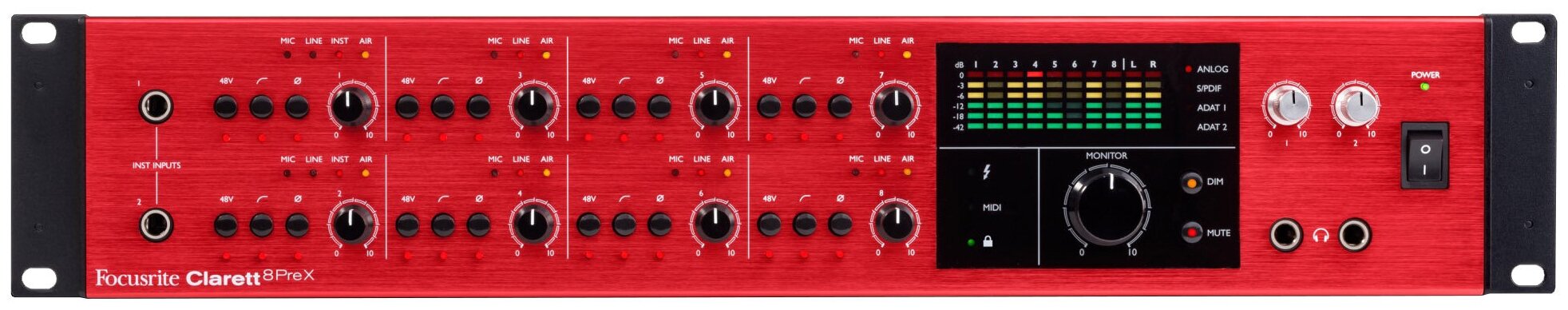 Type: external, connection type: Thunderbolt, connectors and interfaces: Hi-Z instrument input, ADAT support, external synchronization support, phantom power, S/PDIF digital coaxial input, S/PDIF digital coaxial output,