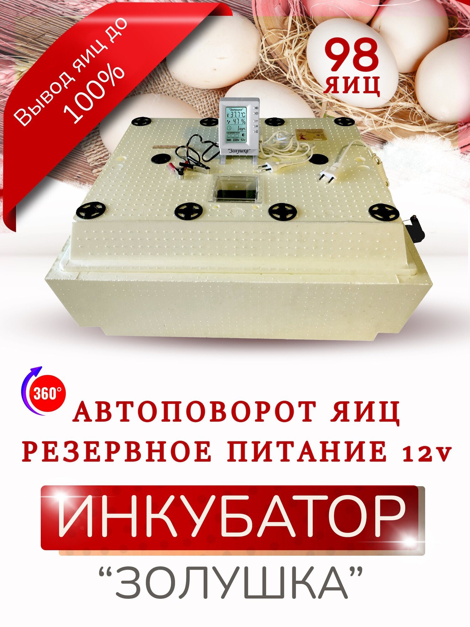 Type: incubator, purpose: household, number in the set: 1 pieces, flipping: automatic, type of eggs: pigeon, goose, turkey, chicken, quail, duck, features: automatic switching to emergency power