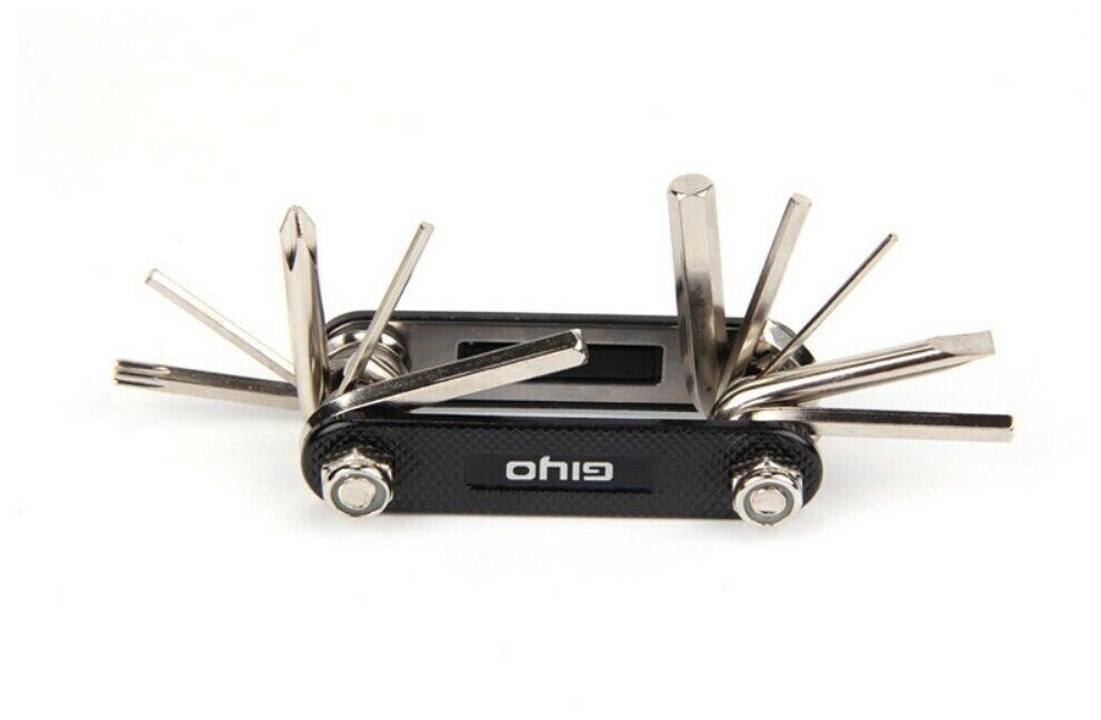 Grand Price PT-09 multifunctional bicycle tire repair tool kit, with pump, in case, black