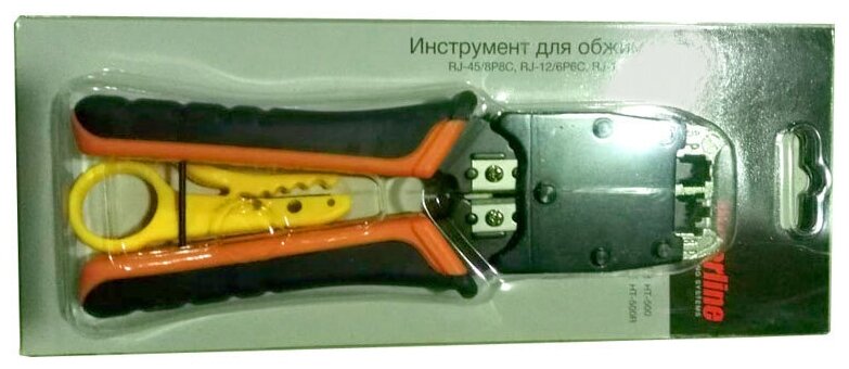 Type: crimper, purpose: cable crimping, cable cutting, stripping, cable type: twisted pair, telephone, tip type: RJ-11, RJ-12, RJ-45