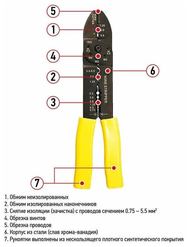 Rexant HT-204 crimper for crimping lugs and stripping wires