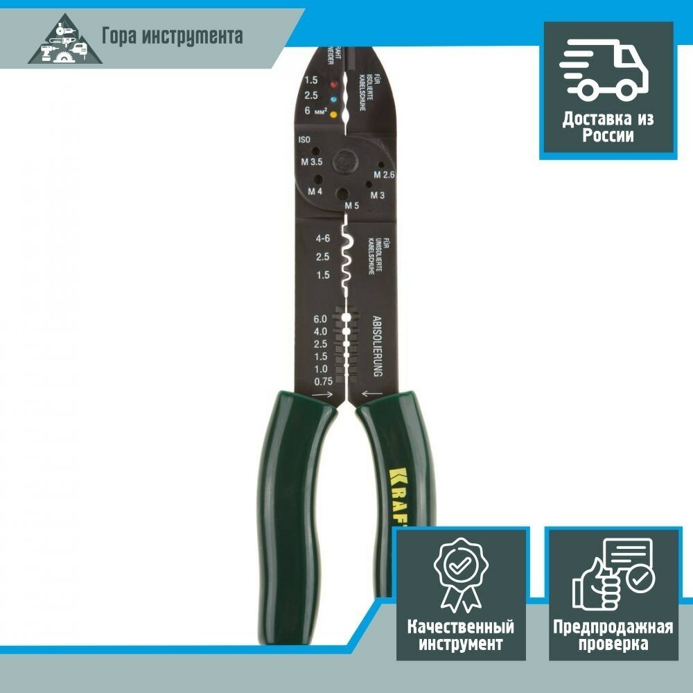 Type: crimper, stripper, side cutters, pliers / pliers, pliers, pliers, locksmith tools, strippers, purpose: cable termination, cable crimp, cable trimming, stripping, cable type: power, lever m