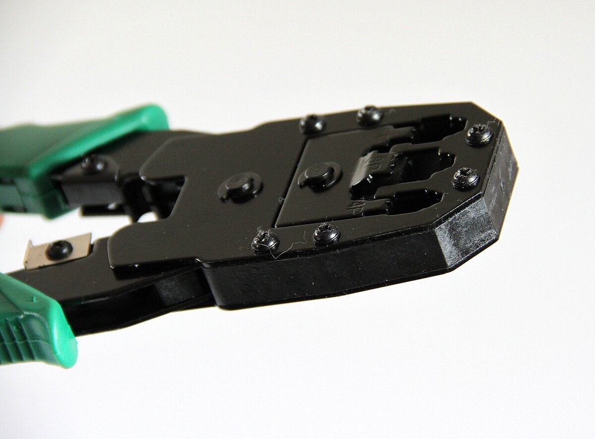 Type: crimper, purpose: cable crimping, cable cutting, stripping, cable type: twisted pair, lug type: RJ-11, RJ-12, RJ-45, lever mechanism