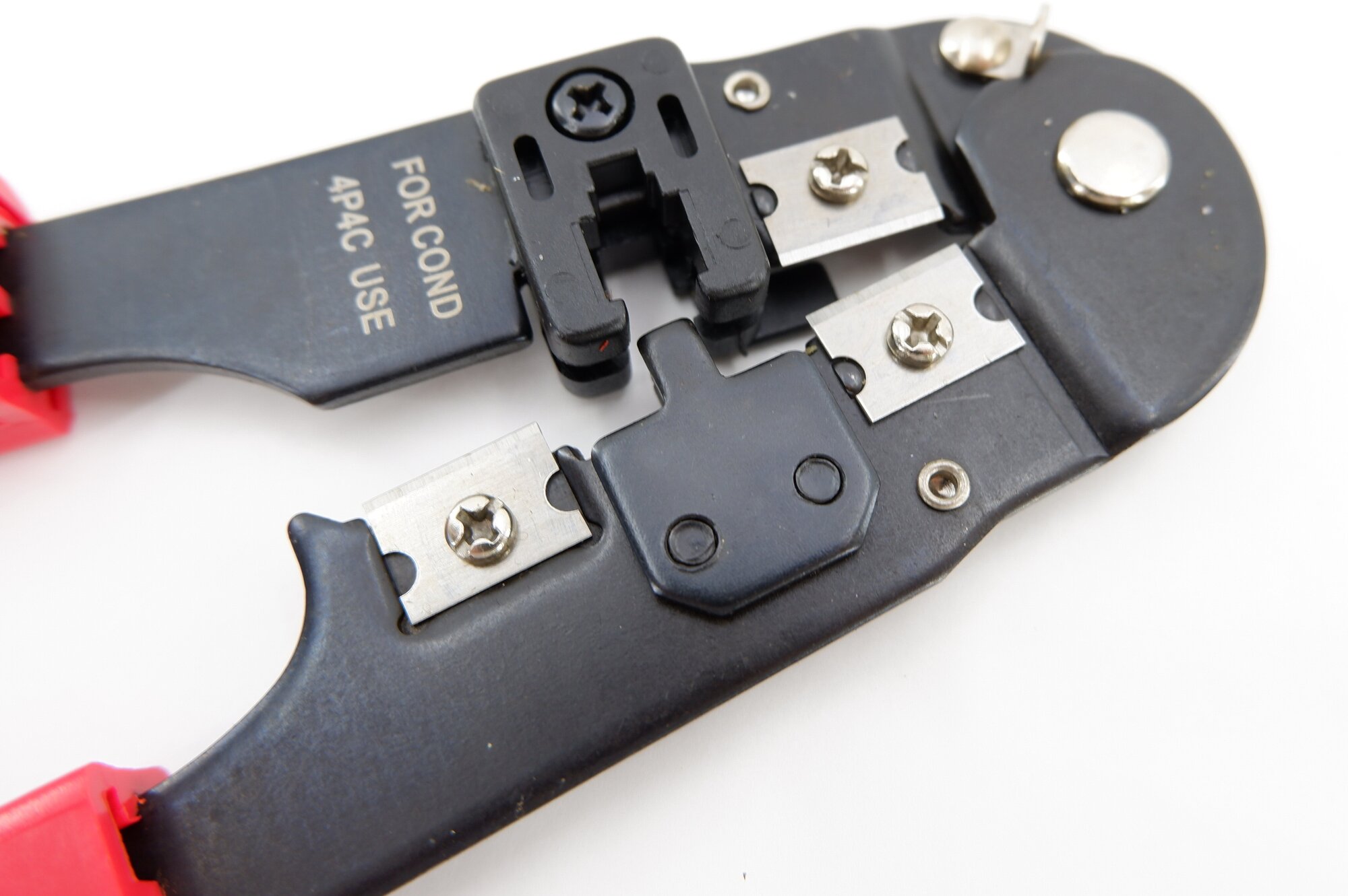 Type: crimper, purpose: cable crimping, cable cutting, stripping, cable type: twisted pair, tip type: RJ-11