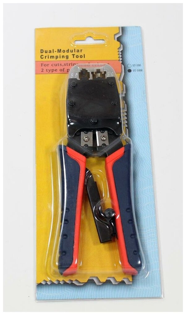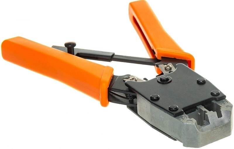 Type: crimper, purpose: cable crimp, cable type: twisted pair, lug type: RJ-11, RJ-12, RJ-45, lever mechanism