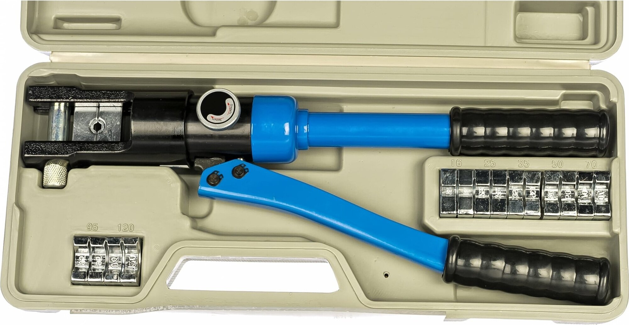 Type: hydraulic press, Hand press, metalwork tool, purpose: crimping of tips, cable type: power, tip type: aluminum tips, copper tips