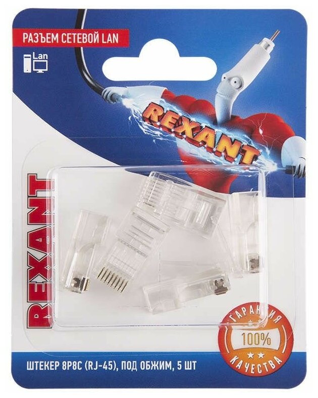 Rexant Network LAN connector on plug 8Р8С Rj-45 for crimping blist.5pcs Rexant 06-0081-A5